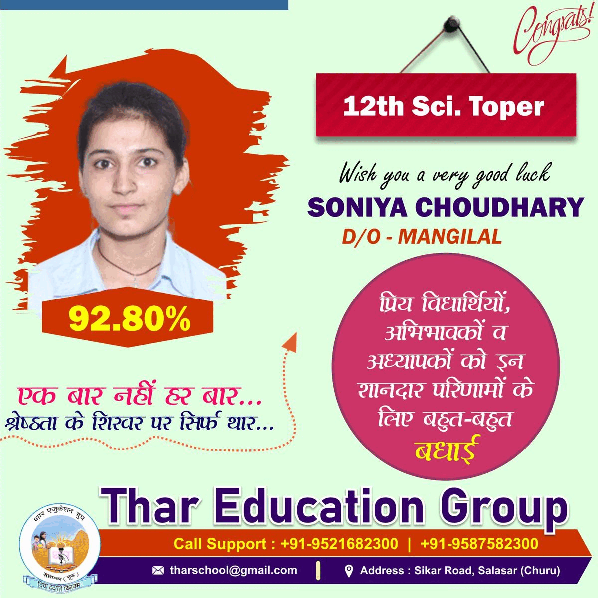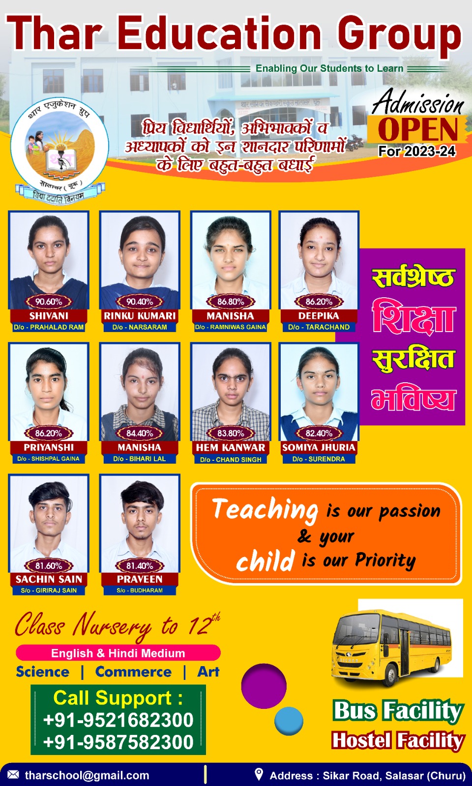Thar Public Sr.Sec. School is a Brilient public school in Salasar, co-educational Senior Secondary School,